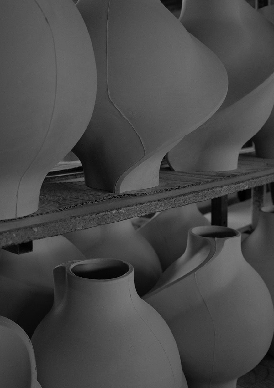 Each and every ceramic object in our collection is hand-molded in Portugal. Our vases and trays endure the touch of adept crafts folk who leverage their generational expertise to perfect each variation. Although durable, ceramic is also fragile and we thus urge you to handle each vase with care to ensure its longevity.
