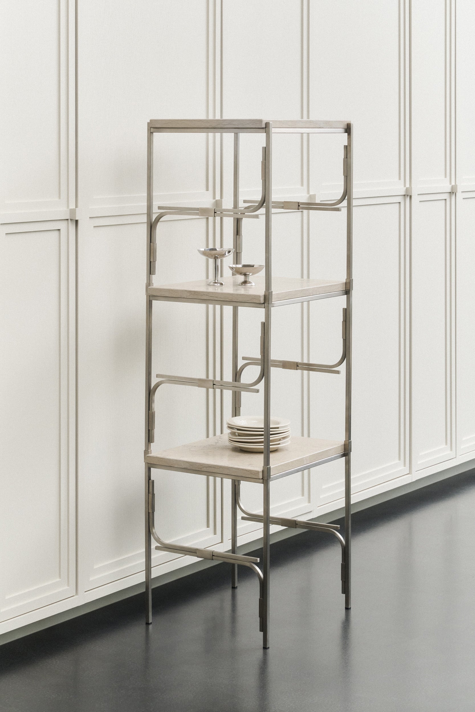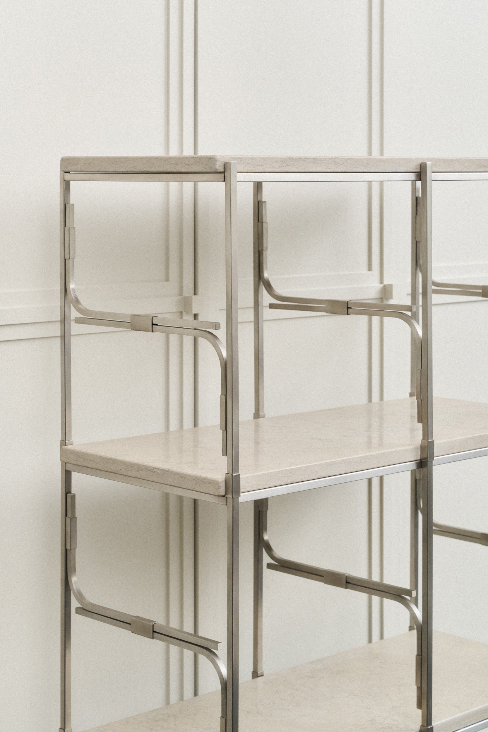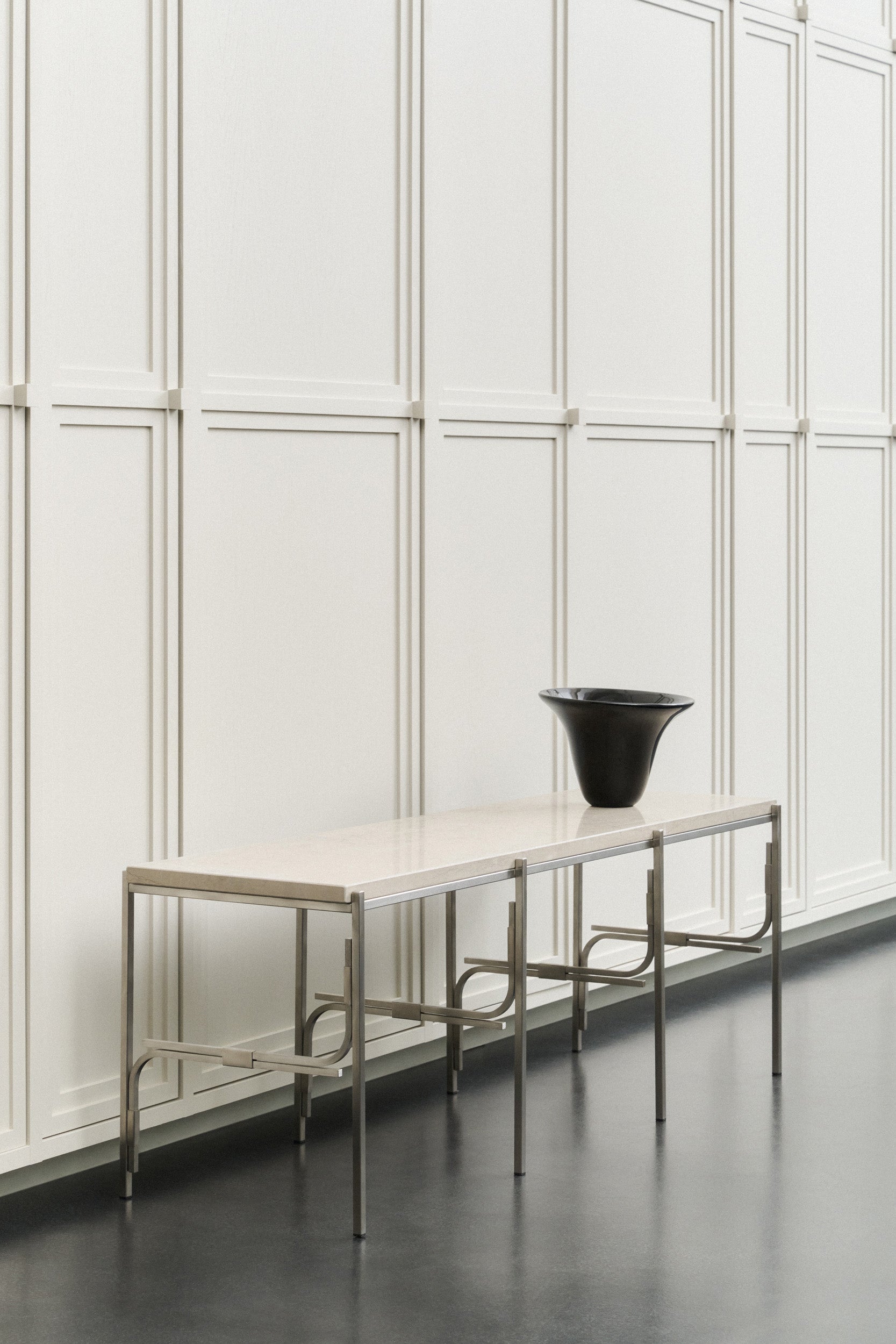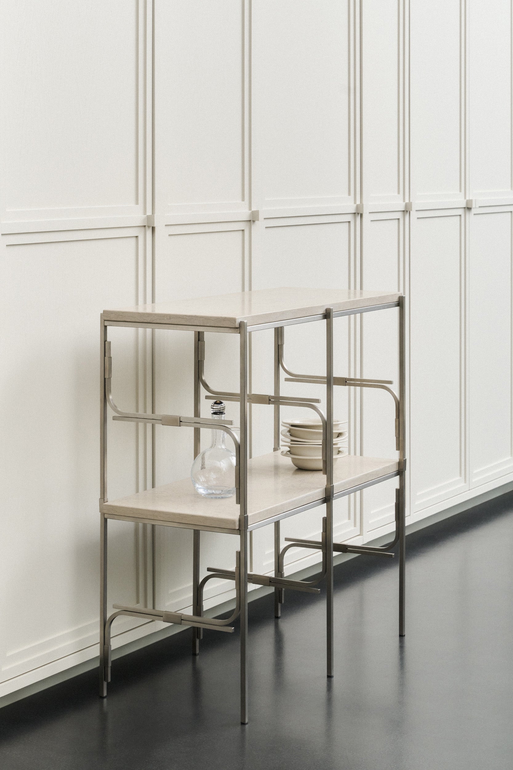 A continuation of the dialogue between Louise Roe Andersen and the Danish design duo Mentze Ottenstein, the Axis Display Unit offers a quiet framework for presence and display. Polished stainless steel meets the natural tactility of Ataíja Azul marble resulting in a composition that feels both precise and grounded.