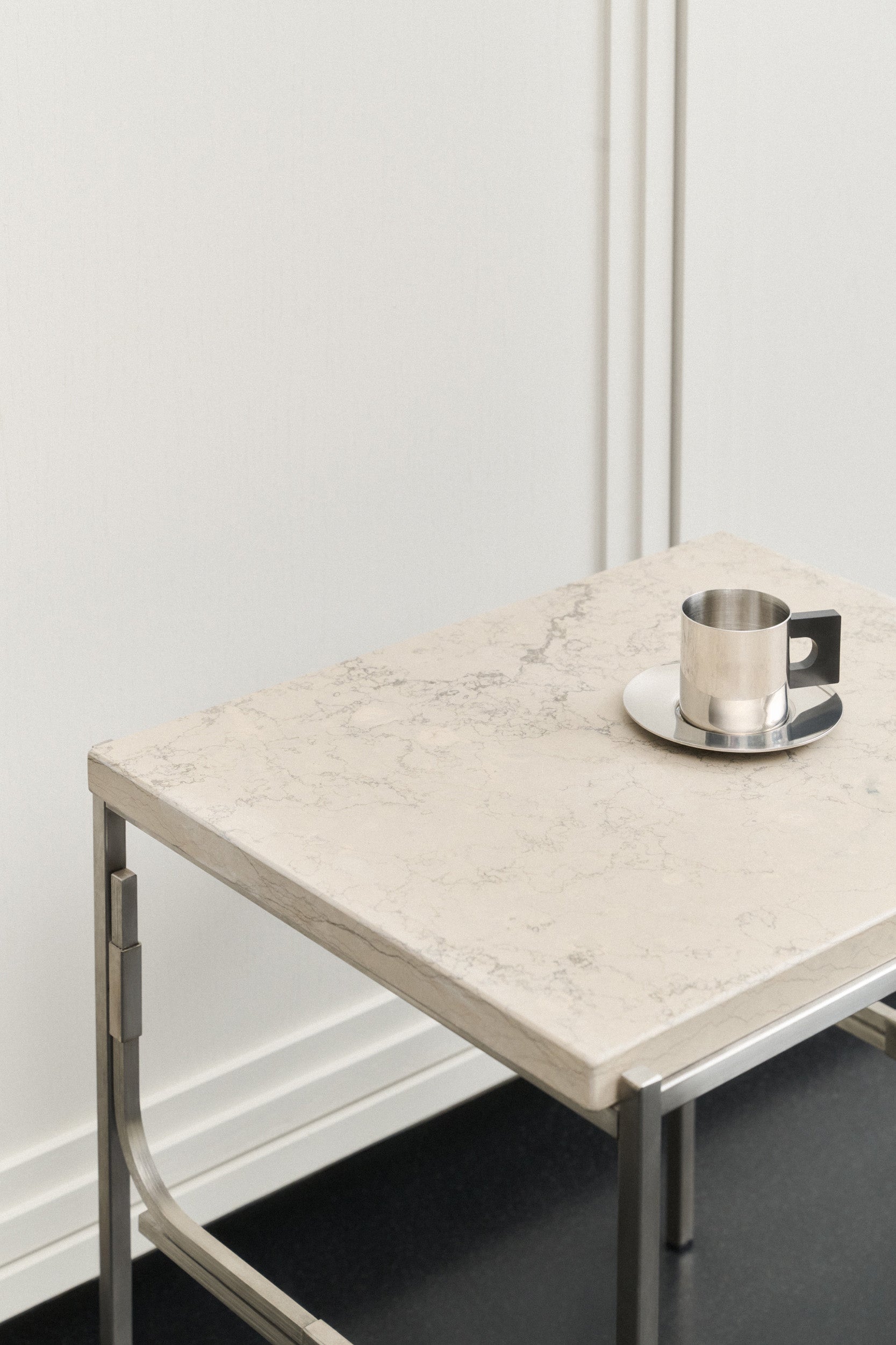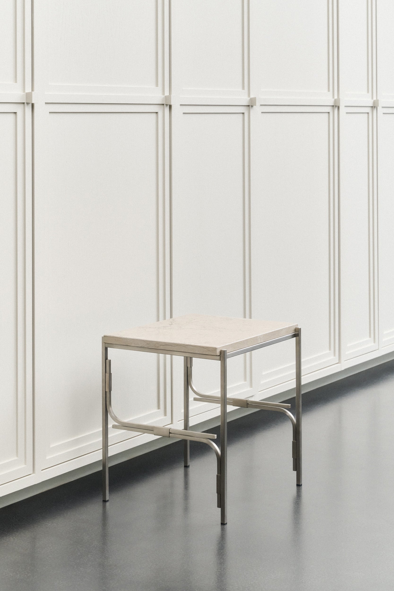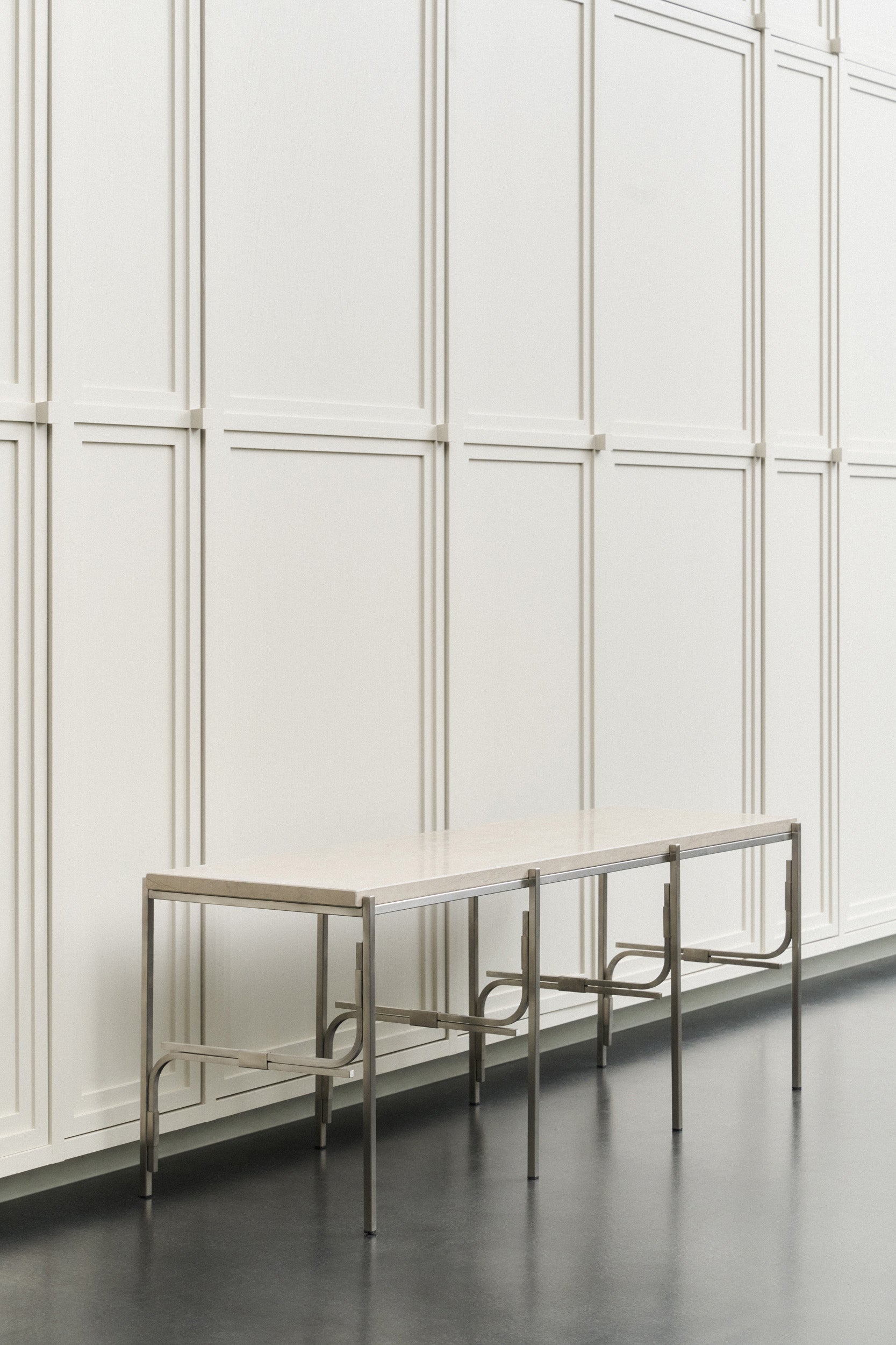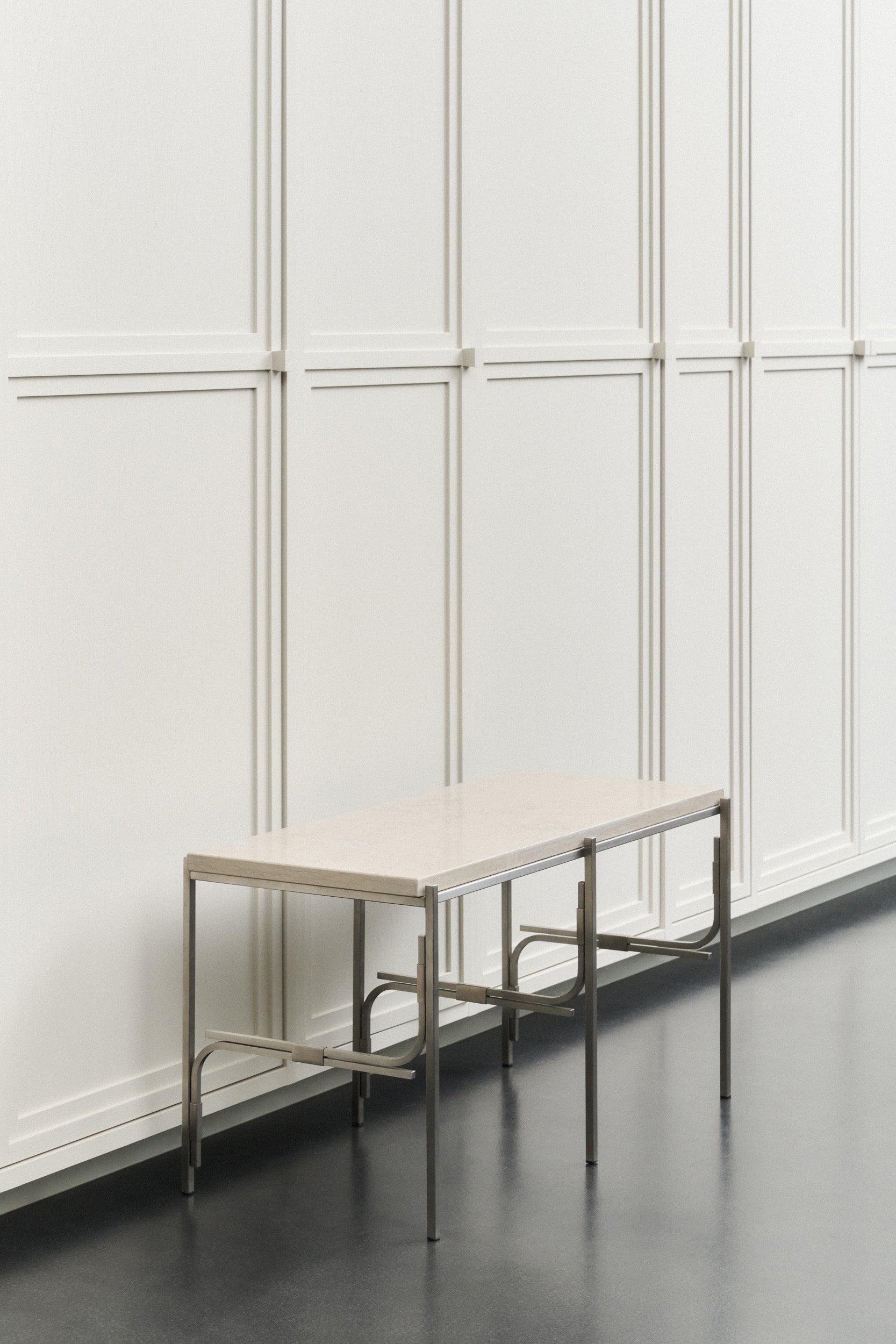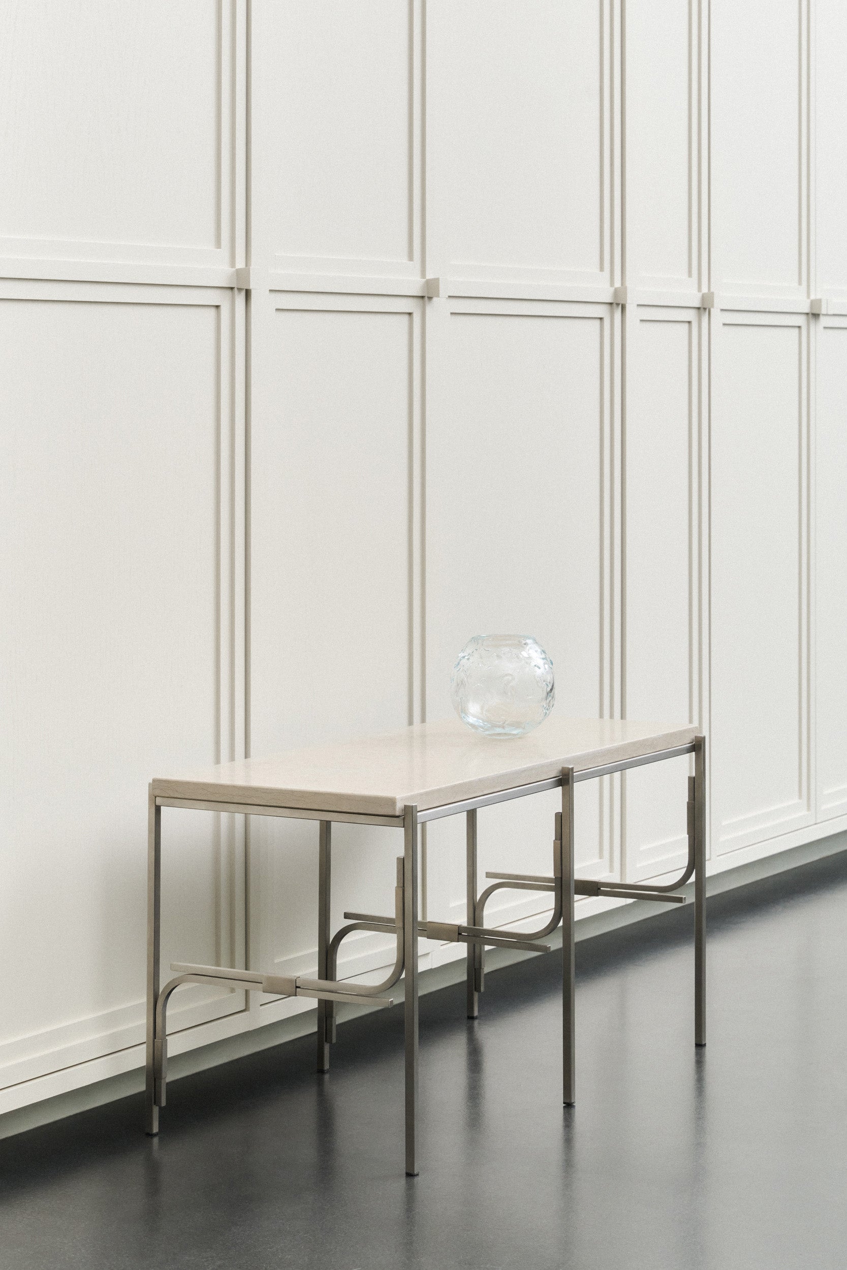 A continuation of the dialogue between Louise Roe Andersen and the Danish design duo Mentze Ottenstein, the Axis Display Unit offers a quiet framework for presence and display. Polished stainless steel meets the natural tactility of Ataíja Azul marble resulting in a composition that feels both precise and grounded.