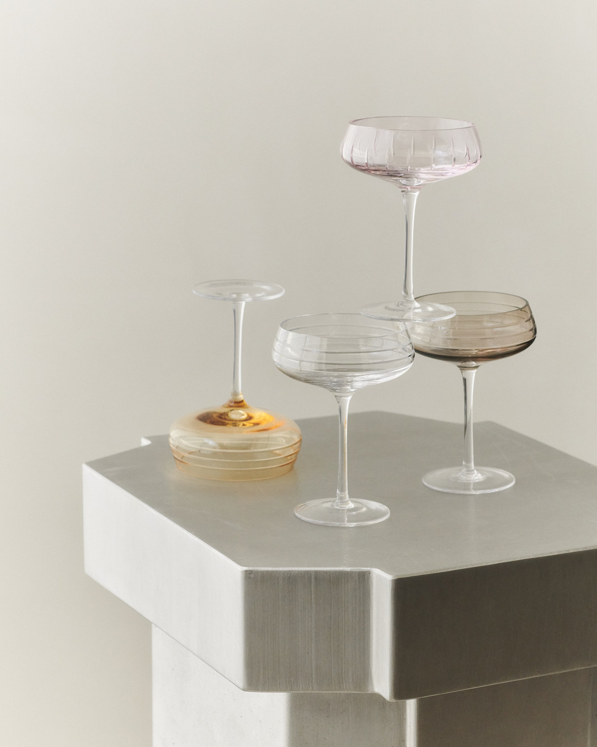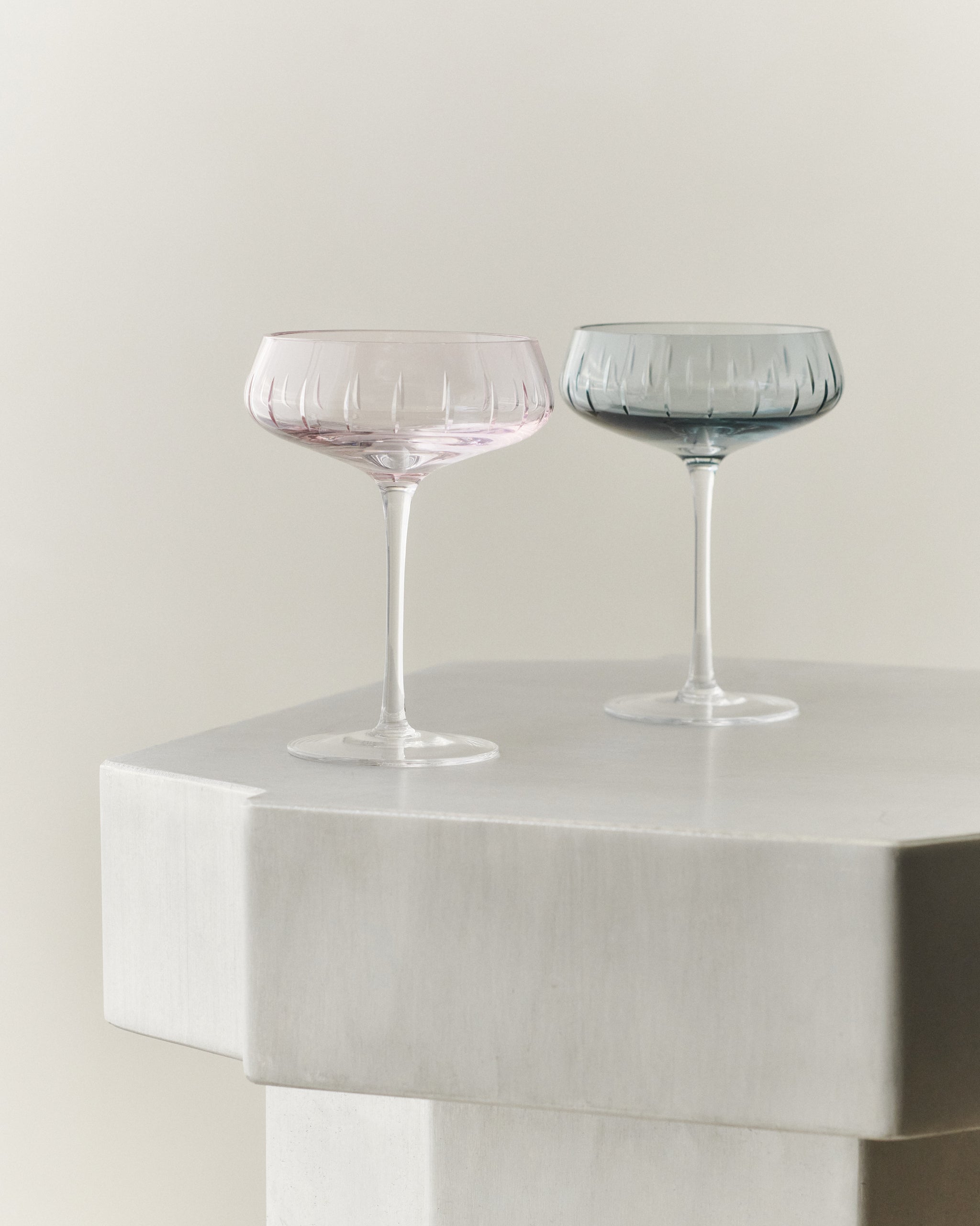 Assuredly a festive composition, our Champagne Coupes elevate any celebratory setting. The entire array is hand-crafted by a glassblower, endowing each glass character and individuality. Minor variances in color and weight intensity merely denote the genuine creation.