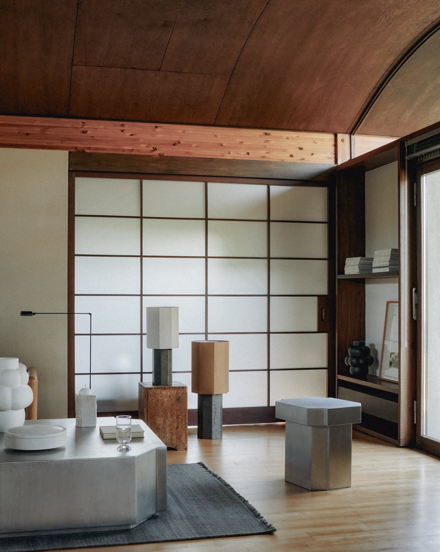 The Eight over Eight Lamp from the LOUISE ROE collection is available in two sizes, four different bases and three assorted shades.