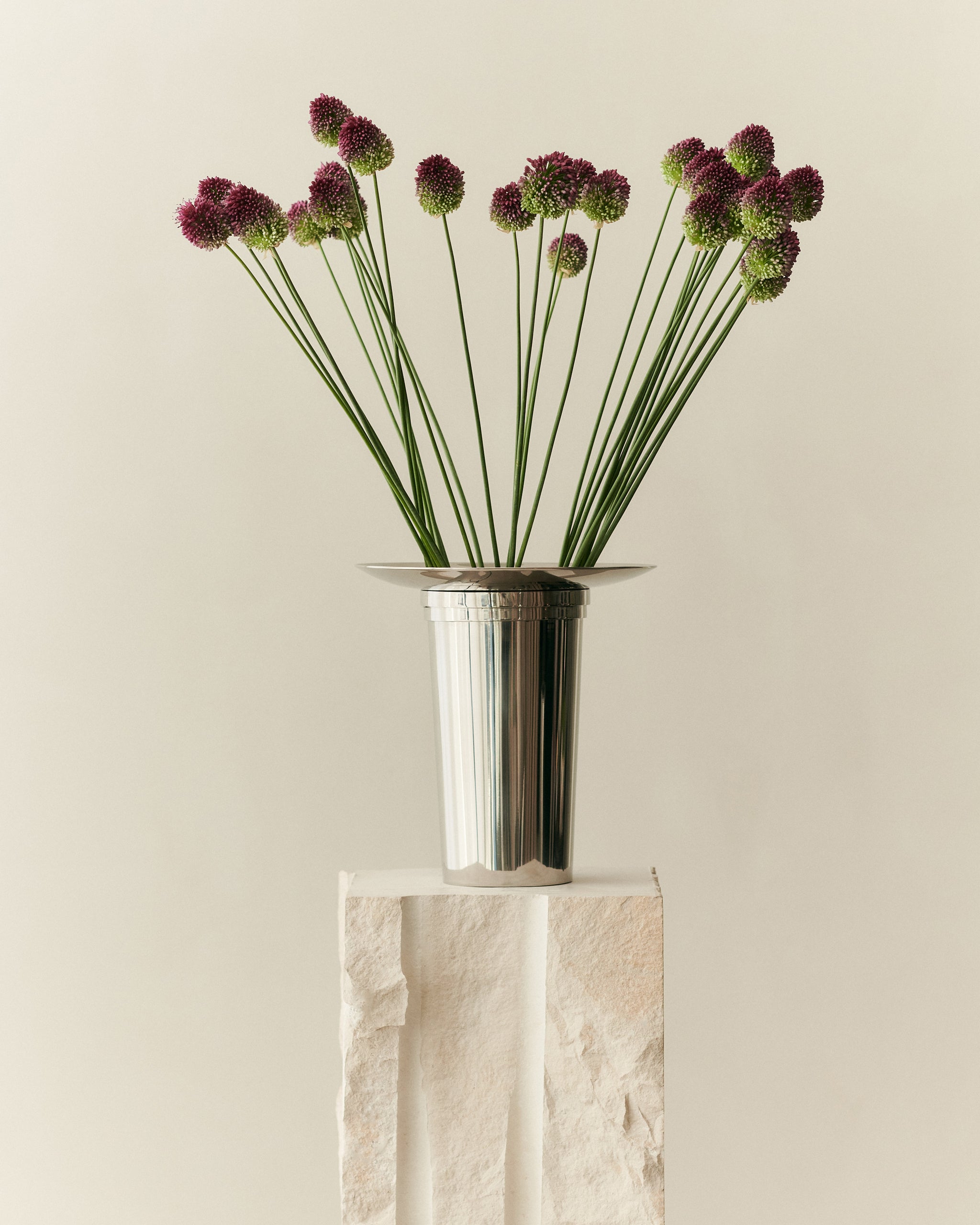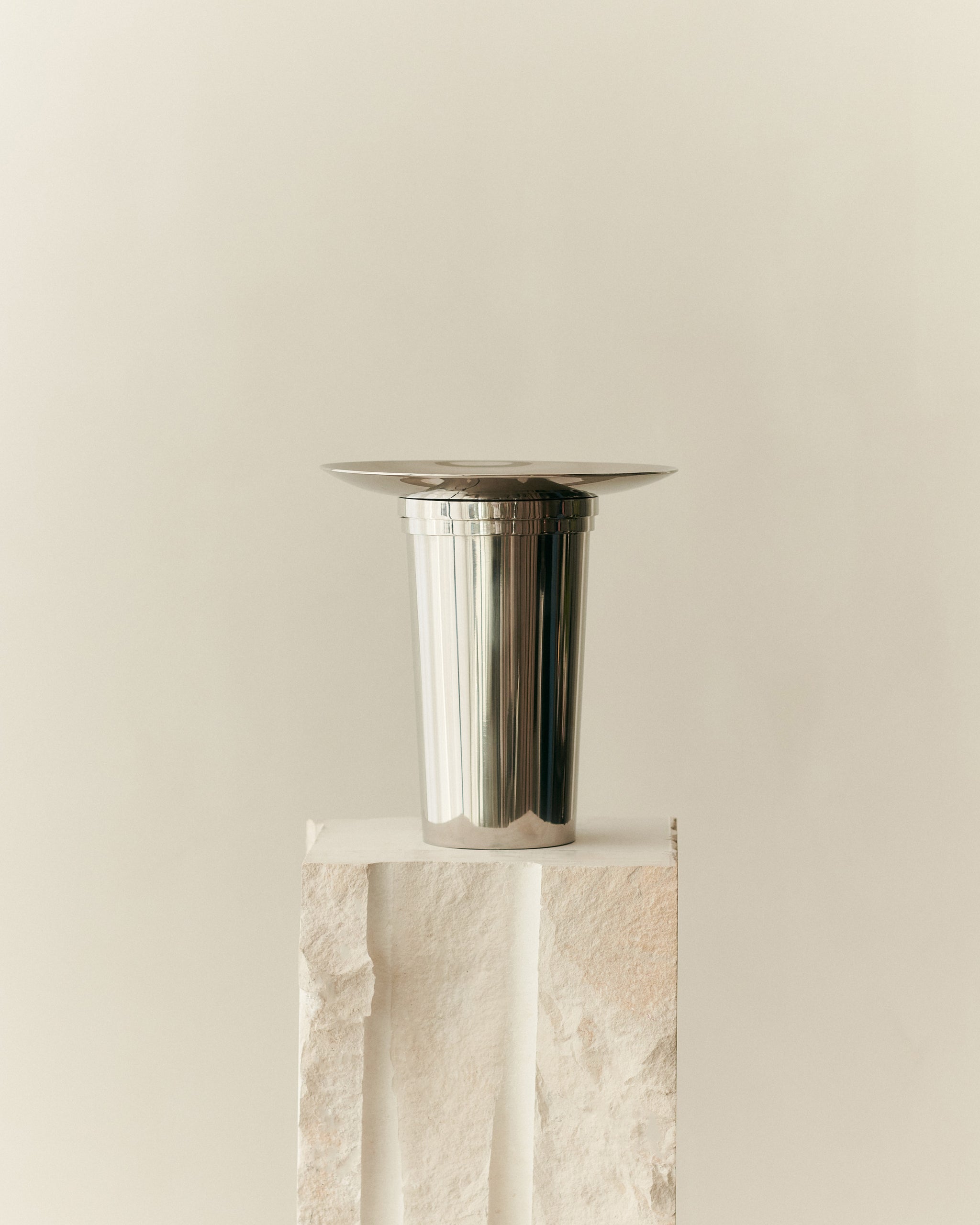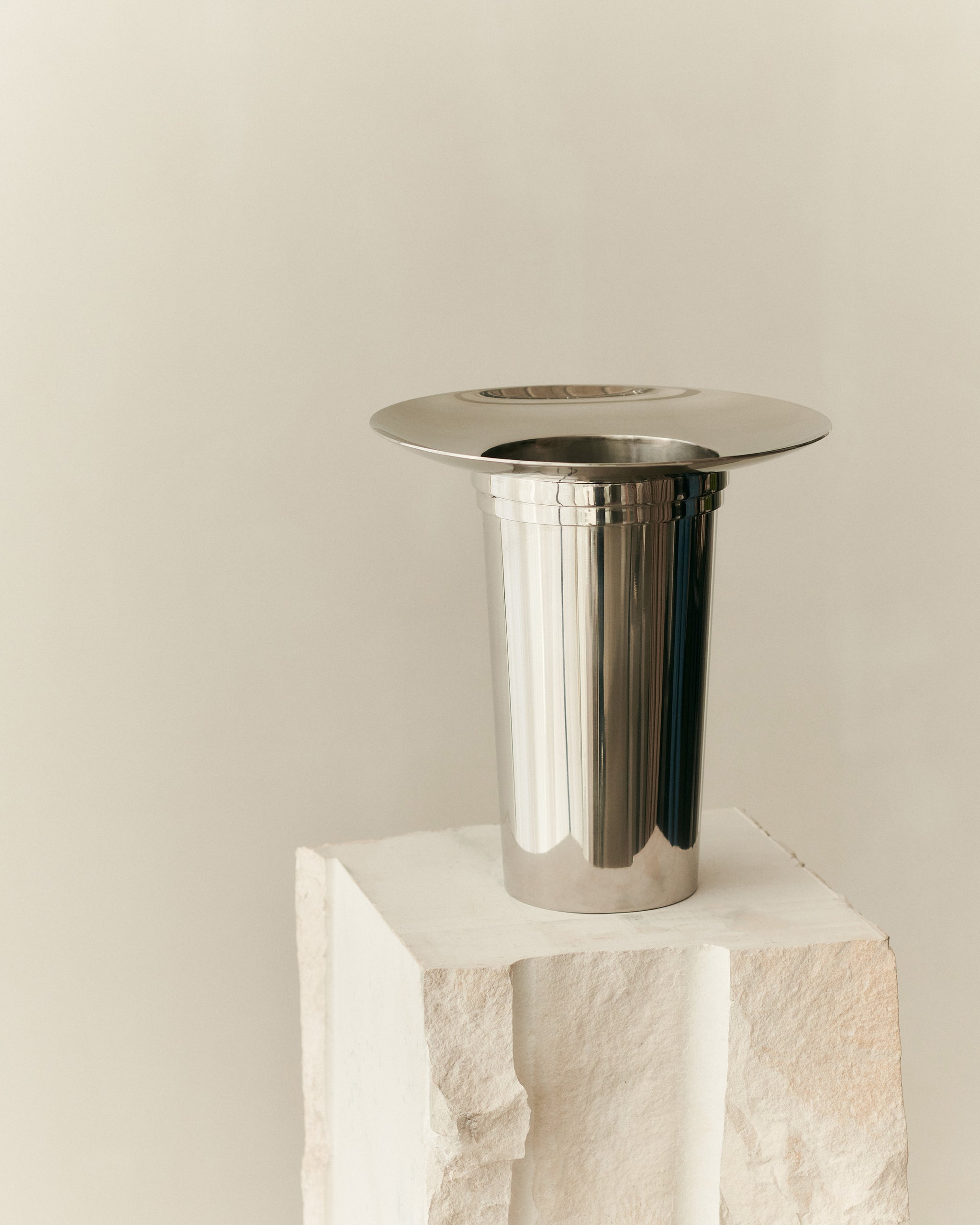 Our Fountain Vase series showcases a dynamic and playful geometric design. Each sculptural vase is meticulously hand-welded from polished stainless steel, featuring a distinctive crown. The array evokes a sense of fluid circularity, reminiscent of a fountain, symbolizing energy and perpetual continuity.