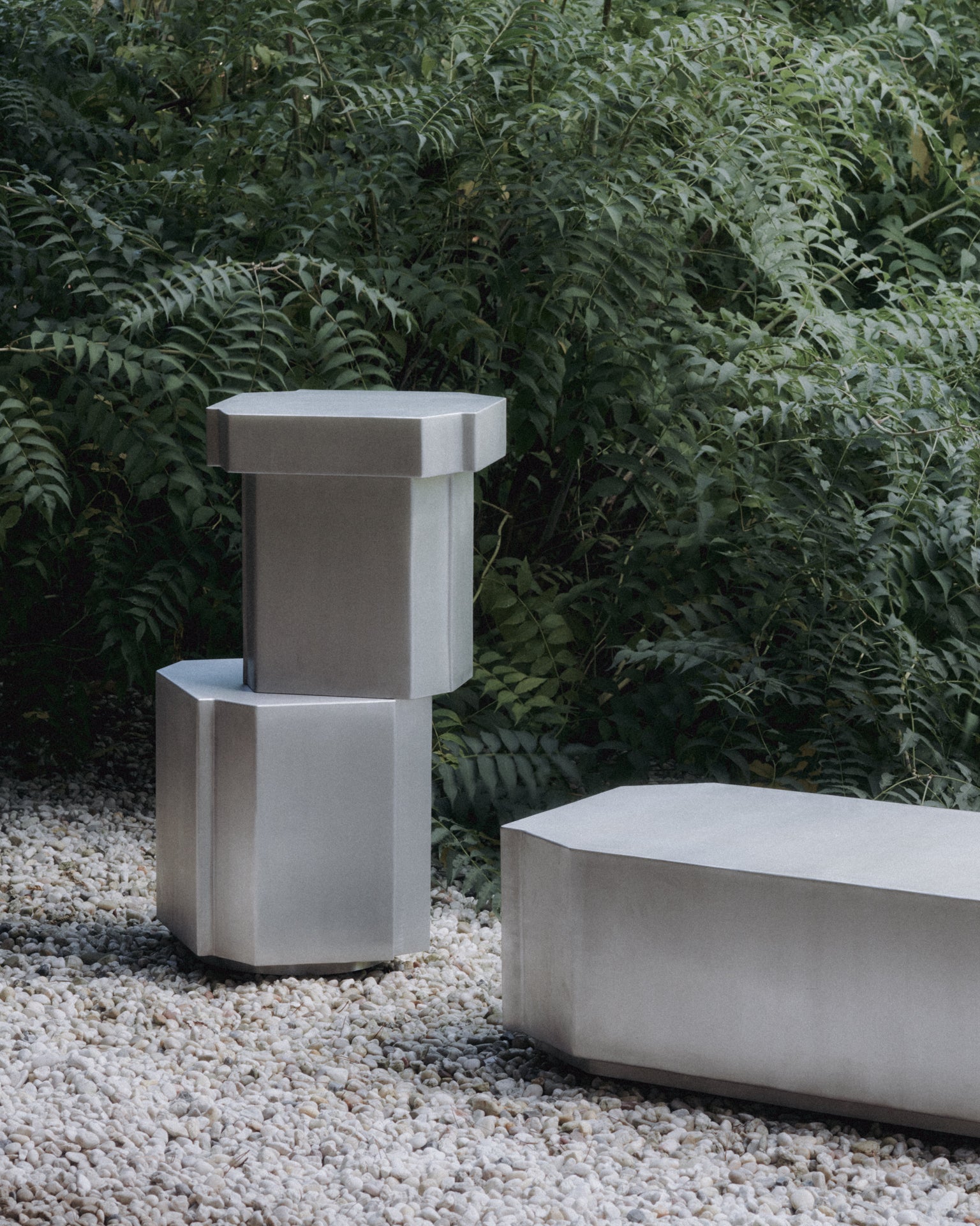Whether a bedside, coffee or dining table, the objects are characteristically also monumental sculptures. Hand-welded by skilled craftspeople, the series functions both indoor and outdoor.