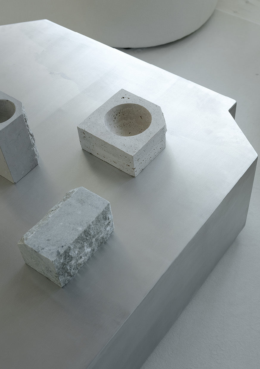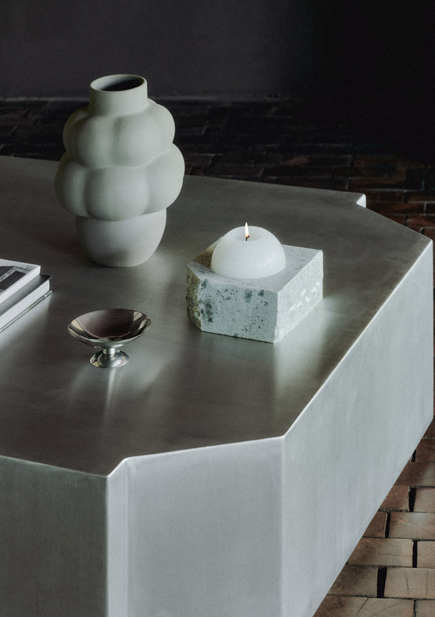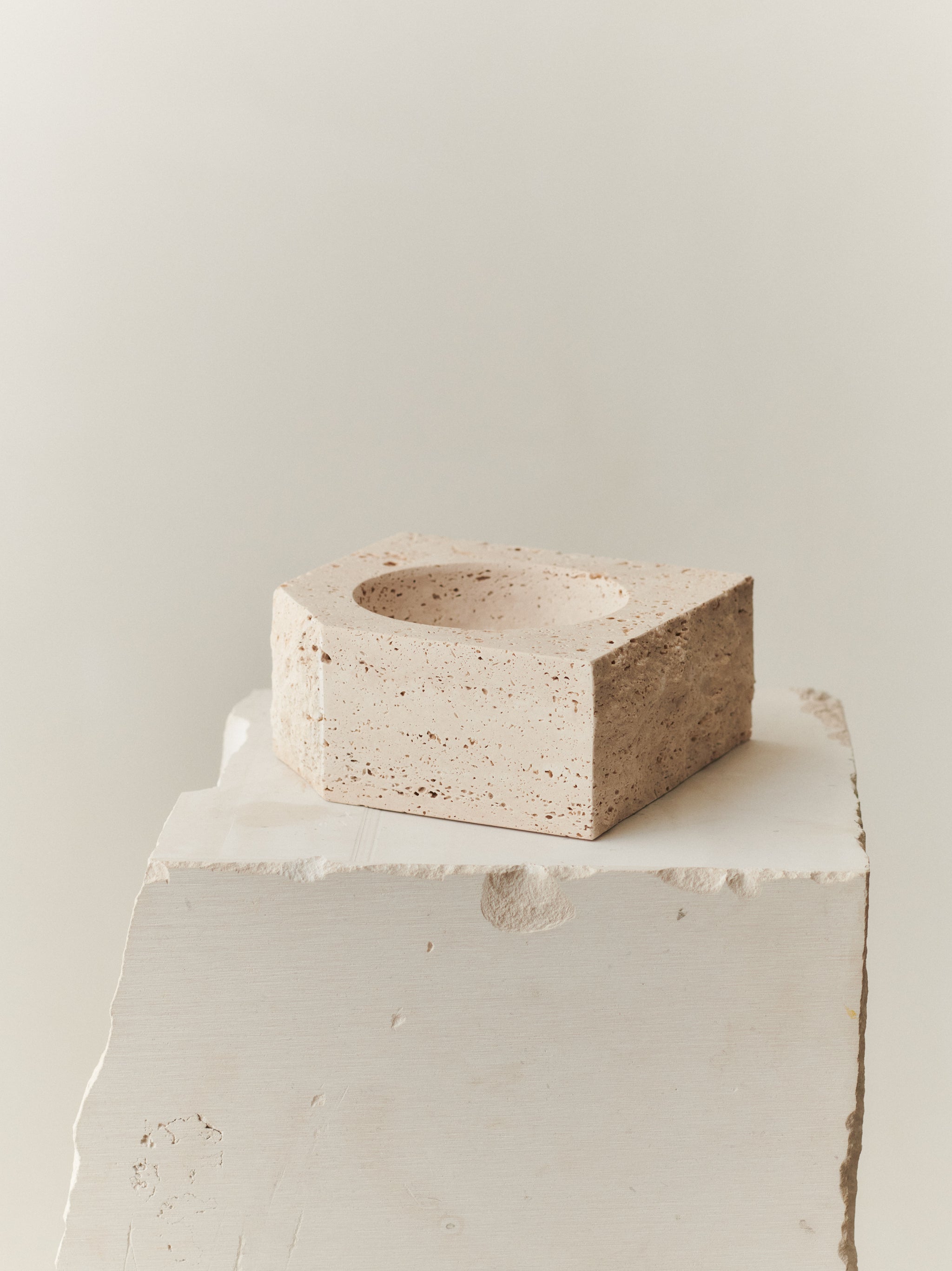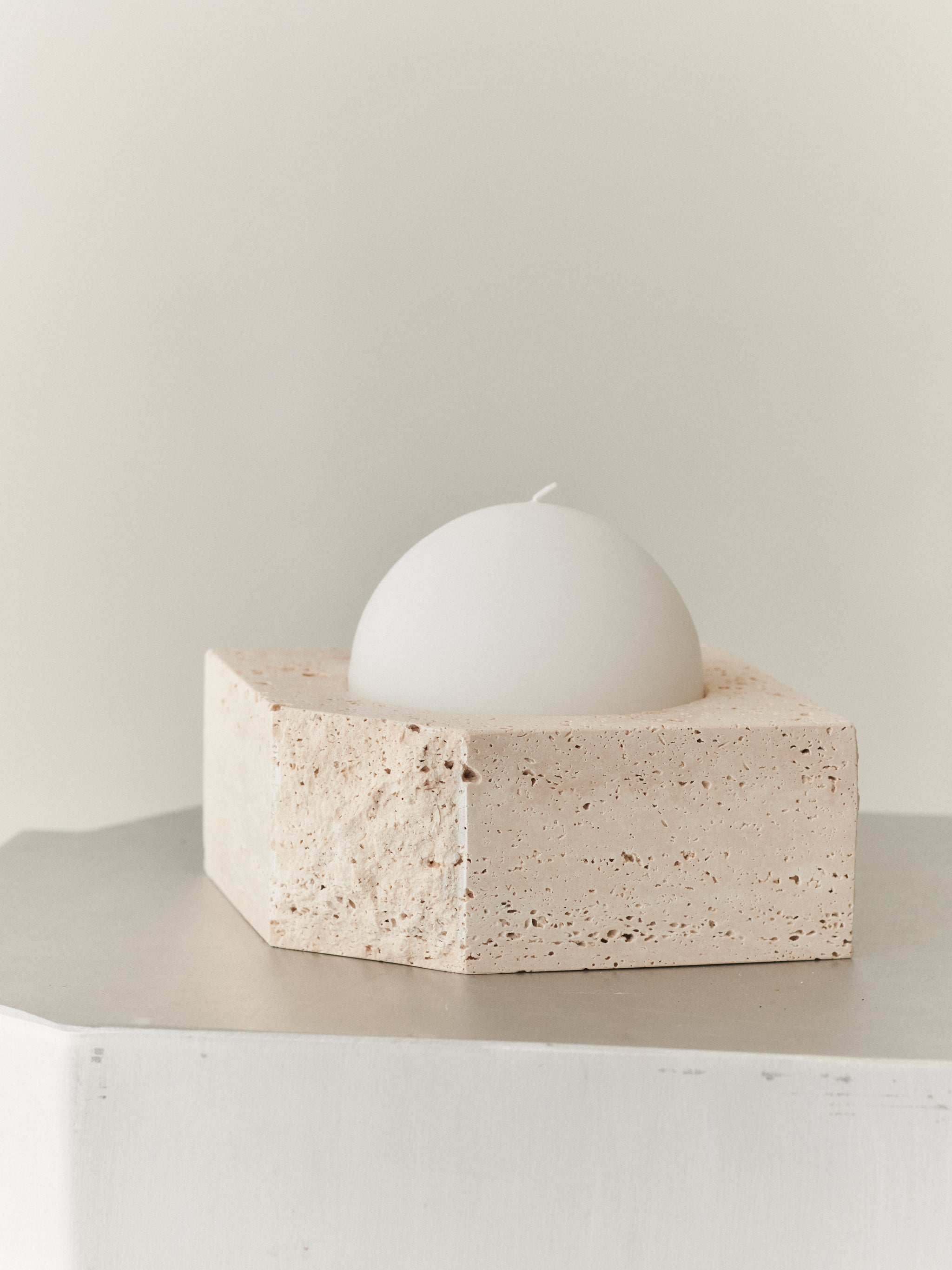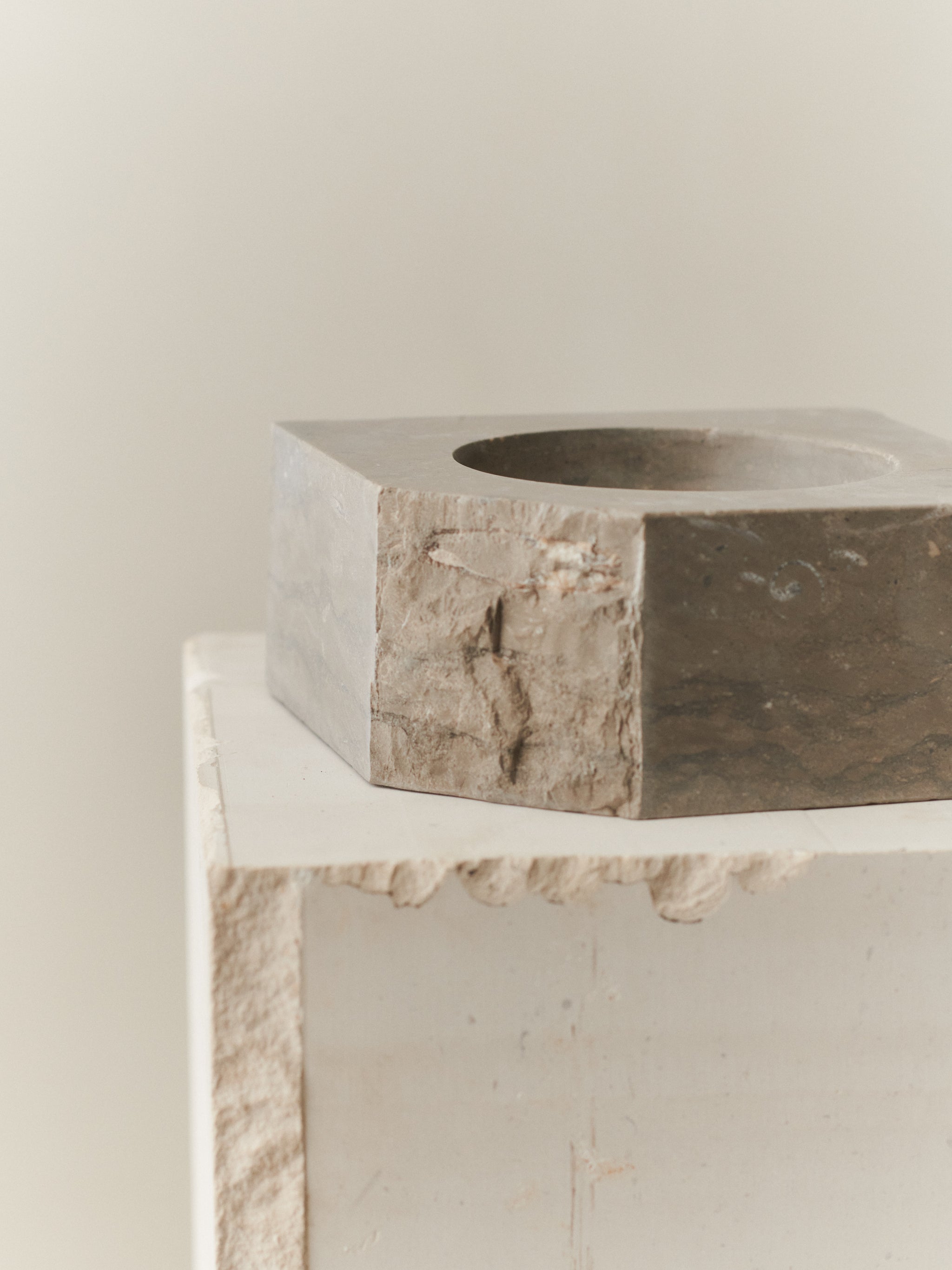 Each artistic object is characterized by a raw corner and side, displaying the authentic and lively layers of the stone material. Charmingly accentuated by a lit candle placed in its hollow, our Gallery Object Stone Candle Light stands notably unaccompanied too.