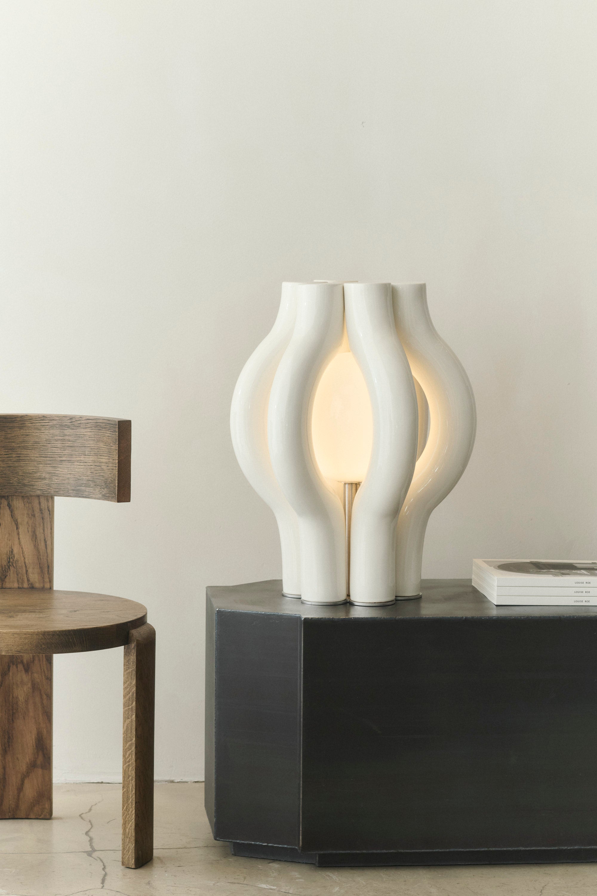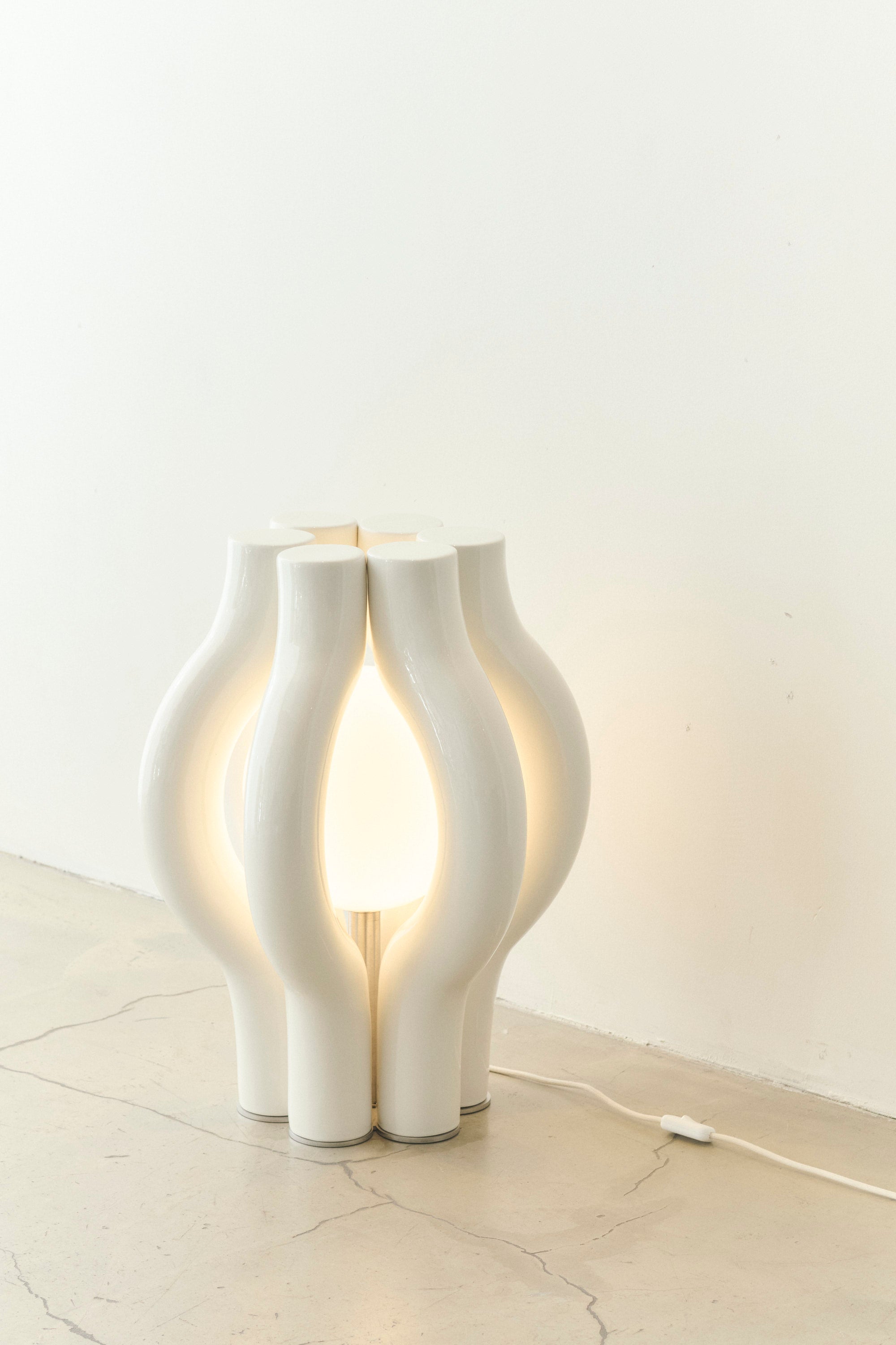 The contrast between the solid ceramic structure and the ethereal glow of the light adds depth and dimension, making the HALO Light Sculpture a captivating presence in any space.