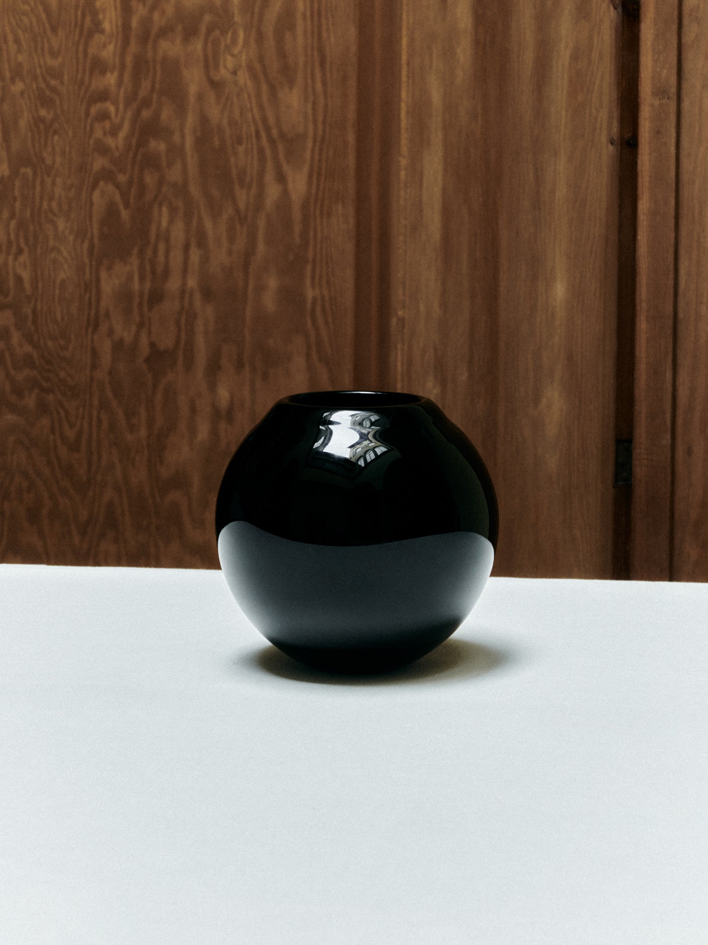 This particular vase displays a gentle, circular figure, complemented by a smooth finish.