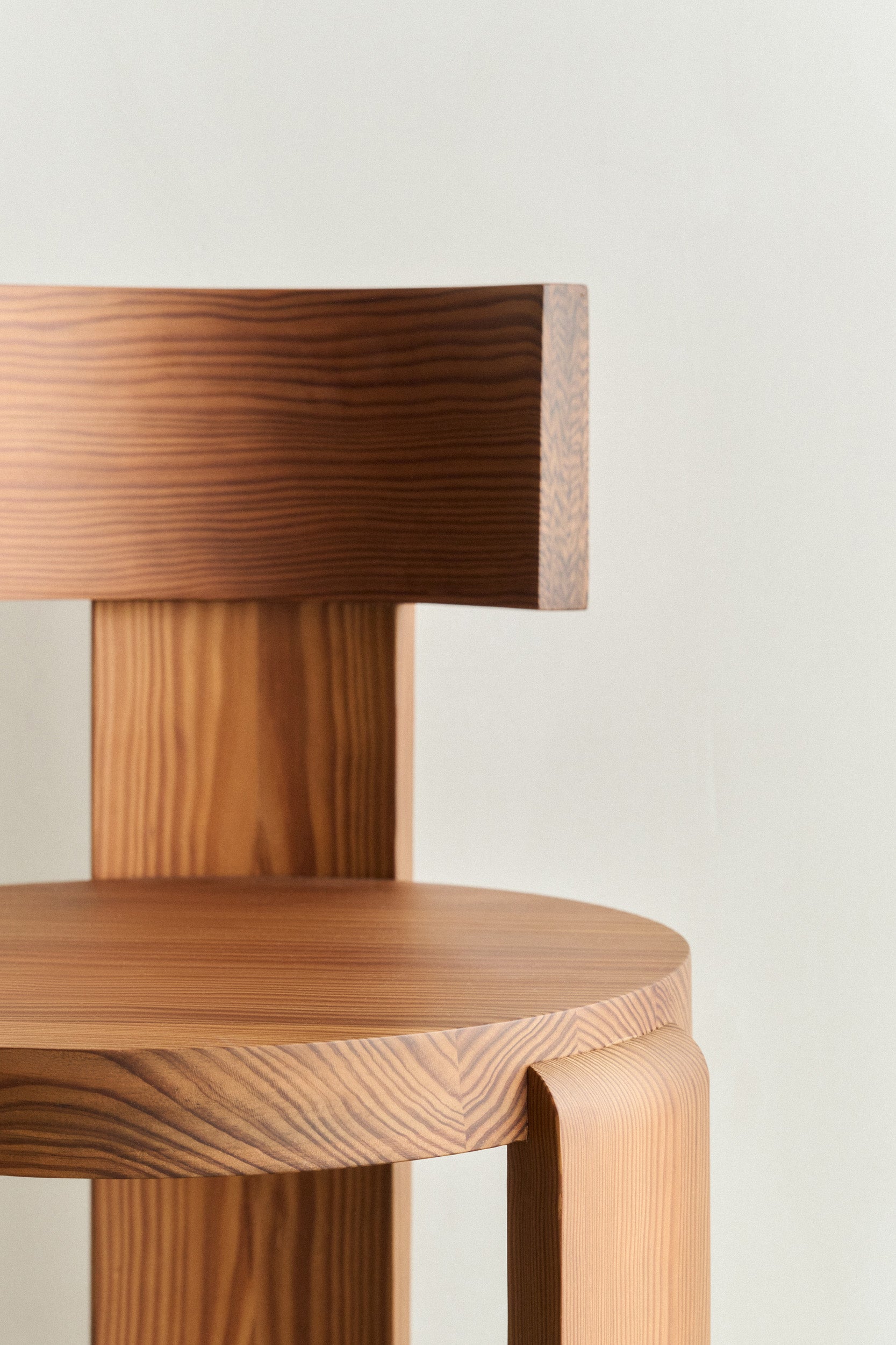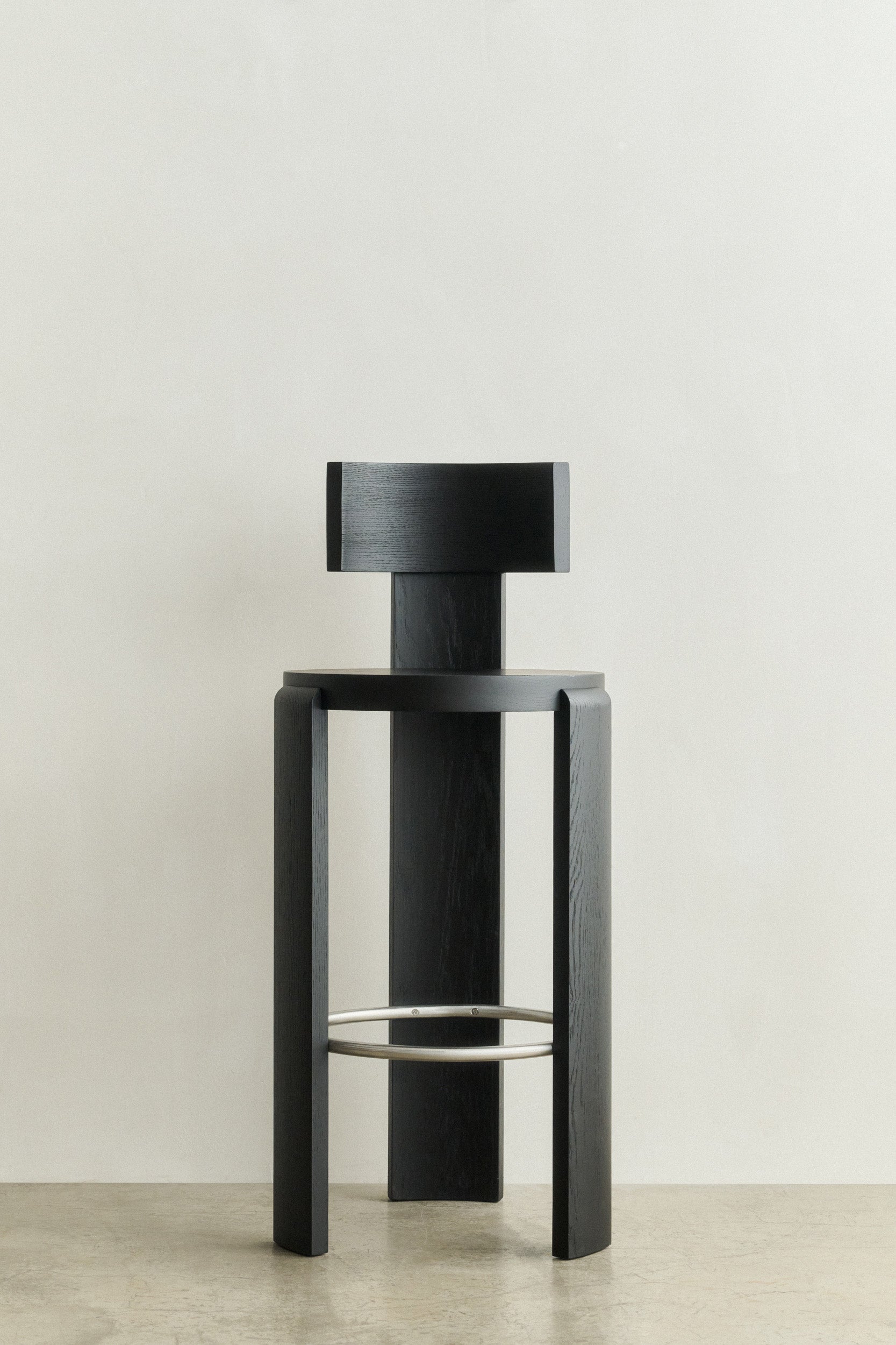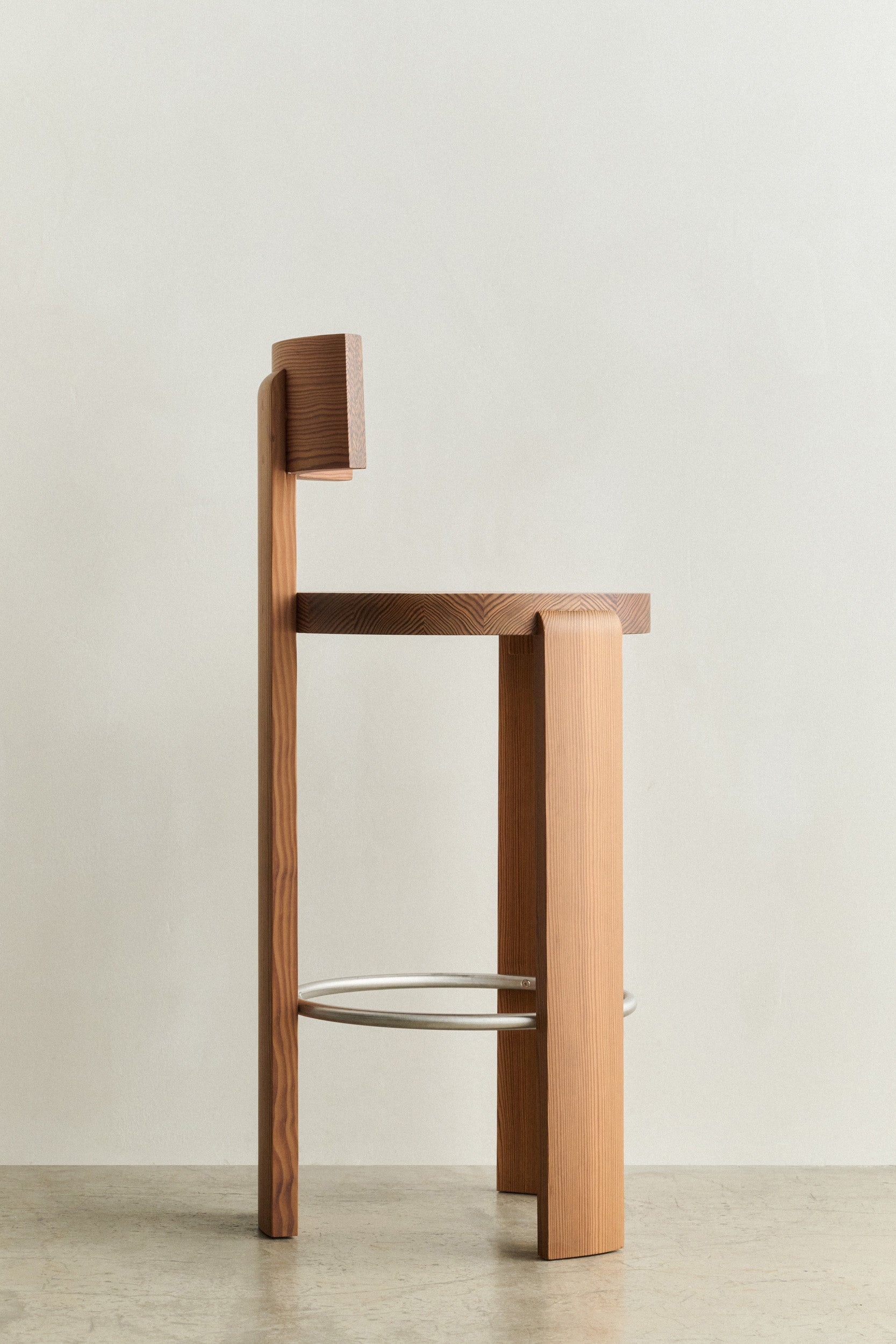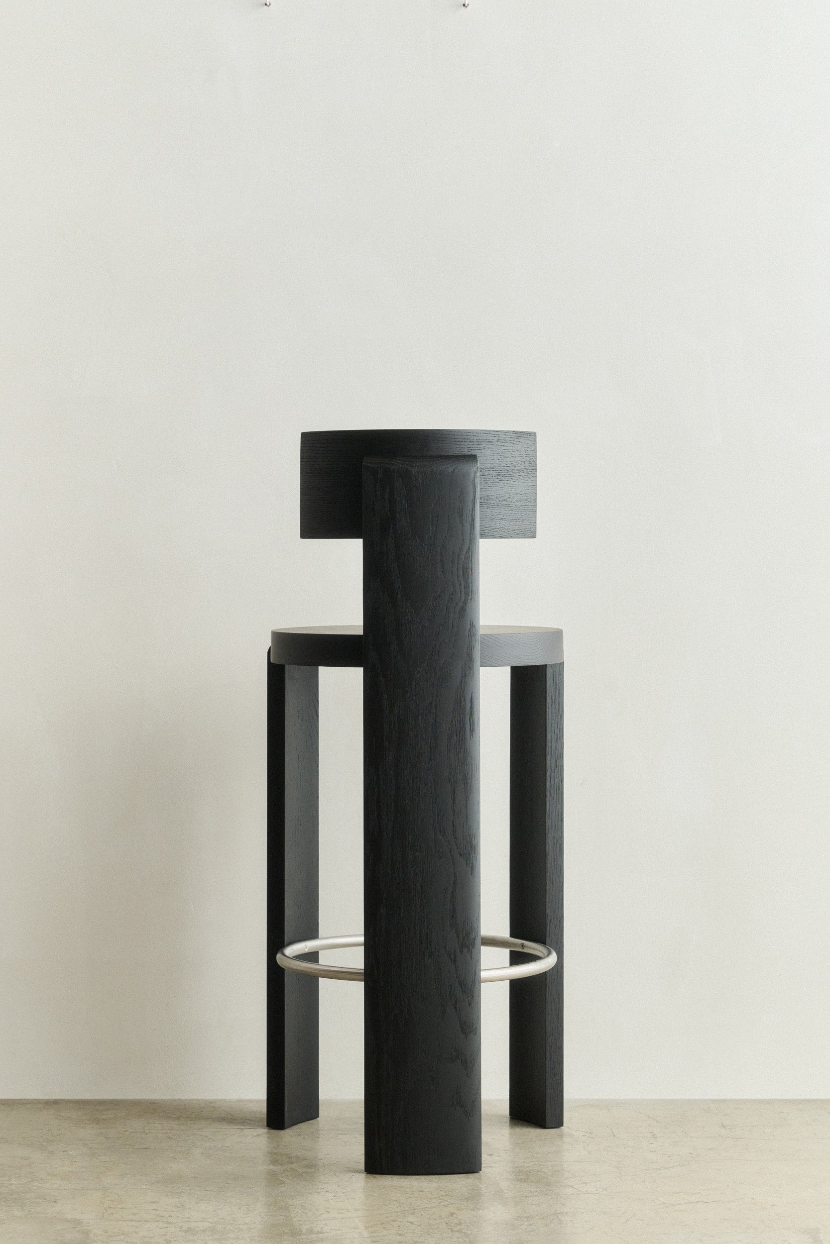 The Spina Bar Chair extends the signature silhouette into taller proportions, reimagined for high seating. Sculptural yet grounded, its curved backrest and tactile seat offer comfort with a refined presence.