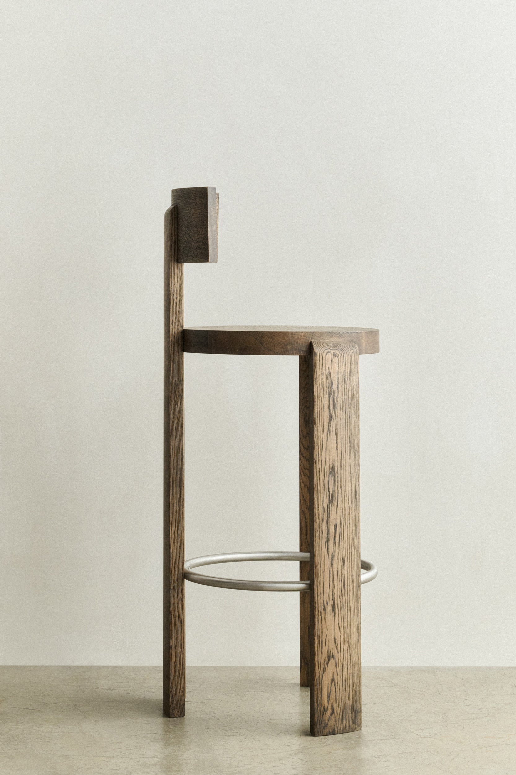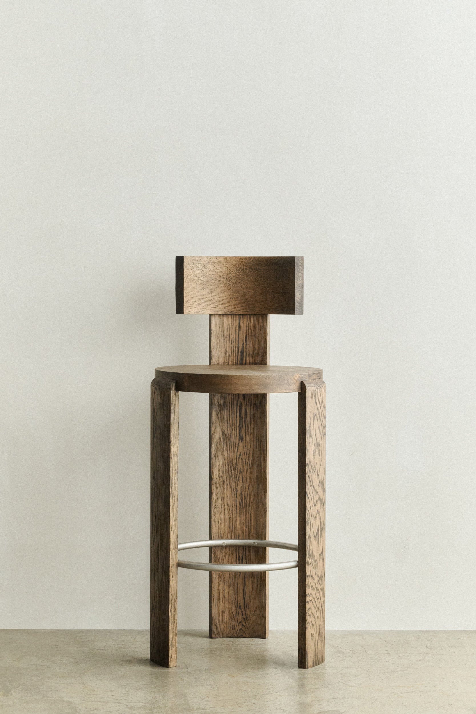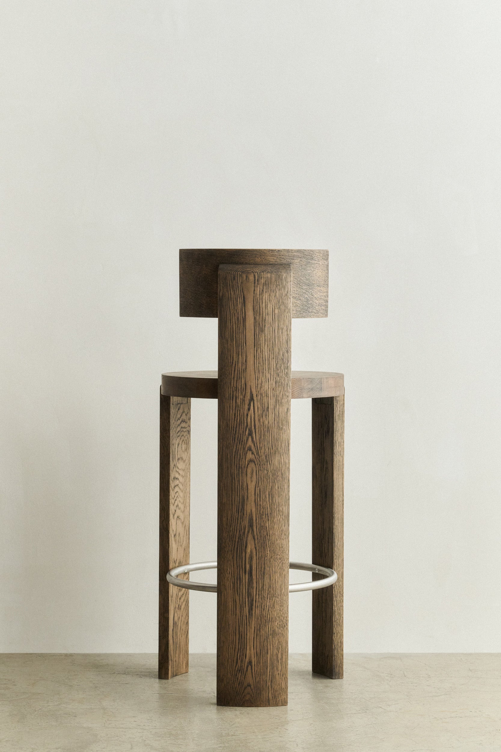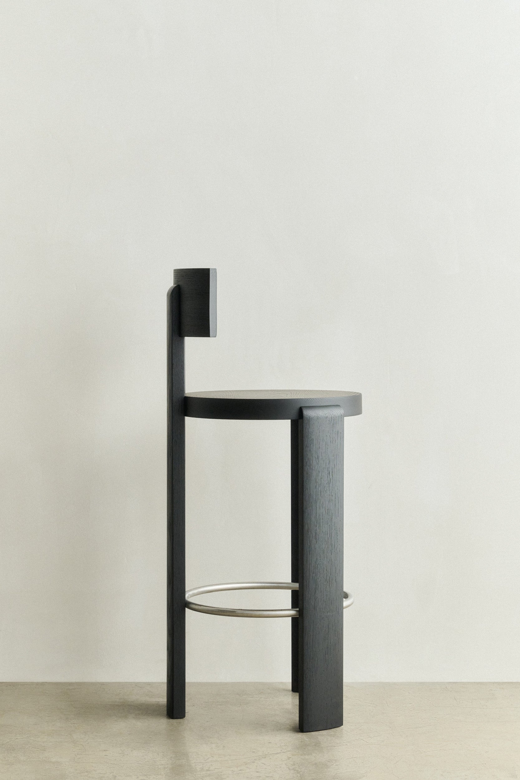 The Spina Bar Chair extends the signature silhouette into taller proportions, reimagined for high seating. Sculptural yet grounded, its curved backrest and tactile seat offer comfort with a refined presence.