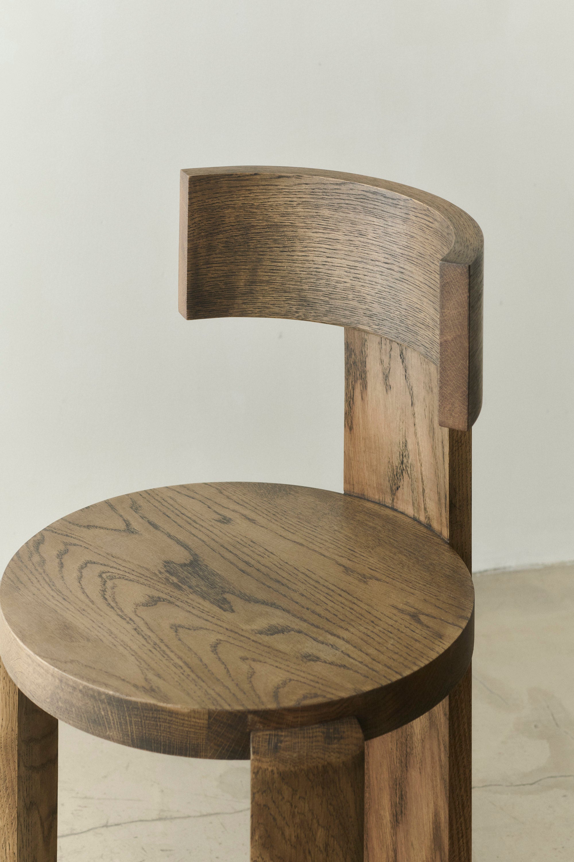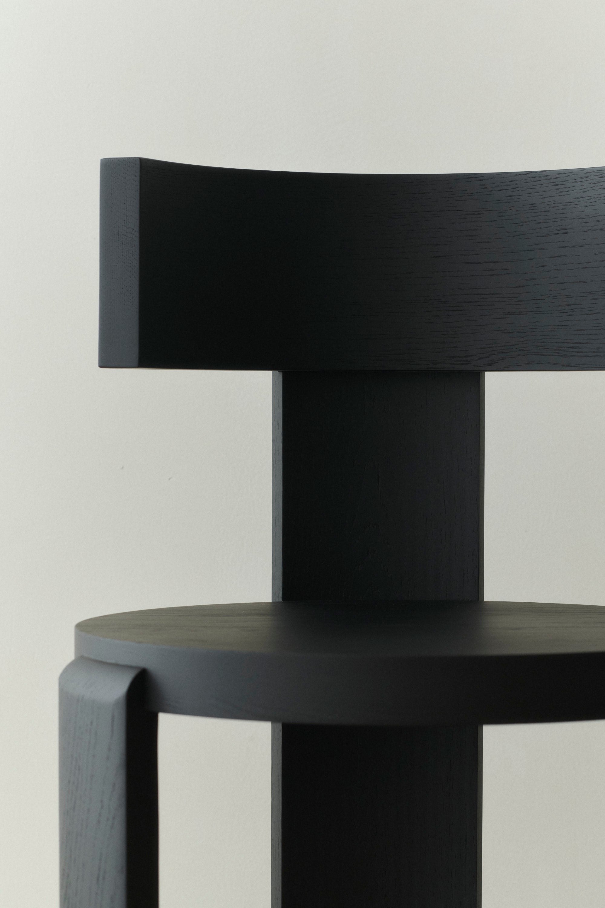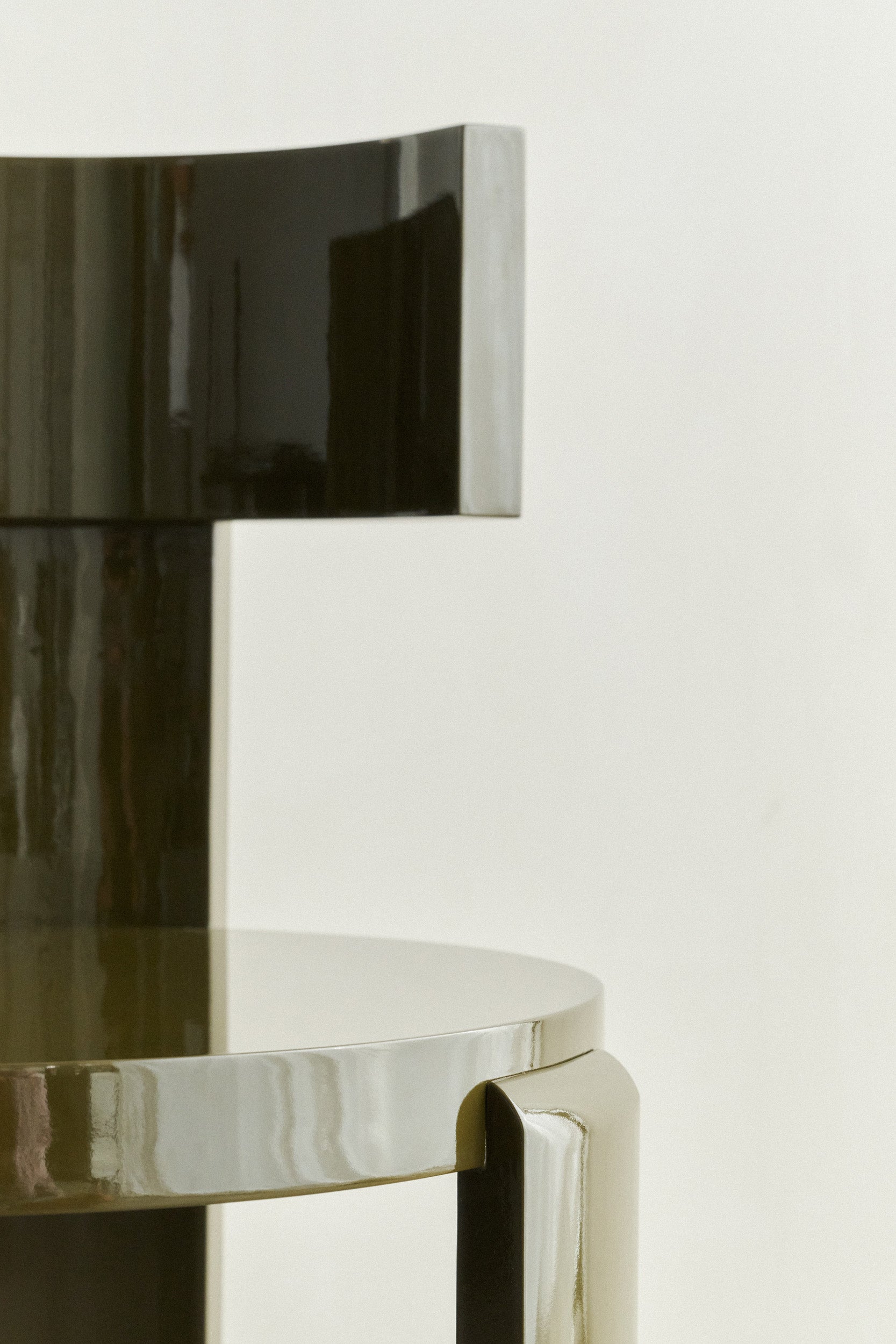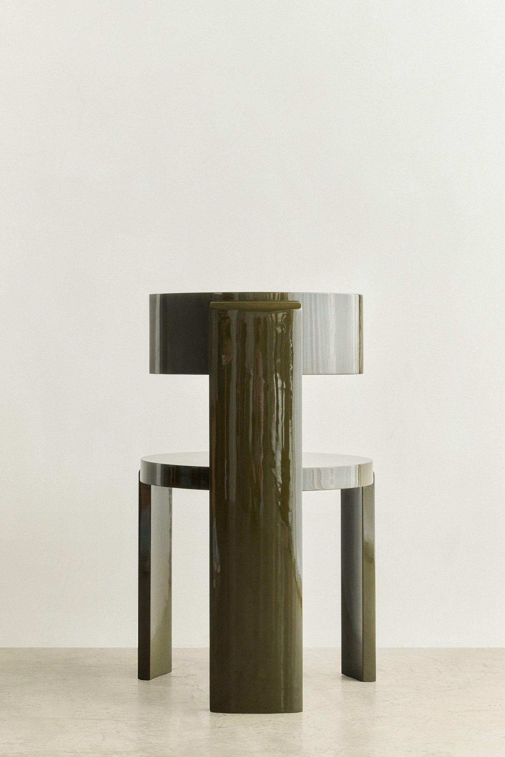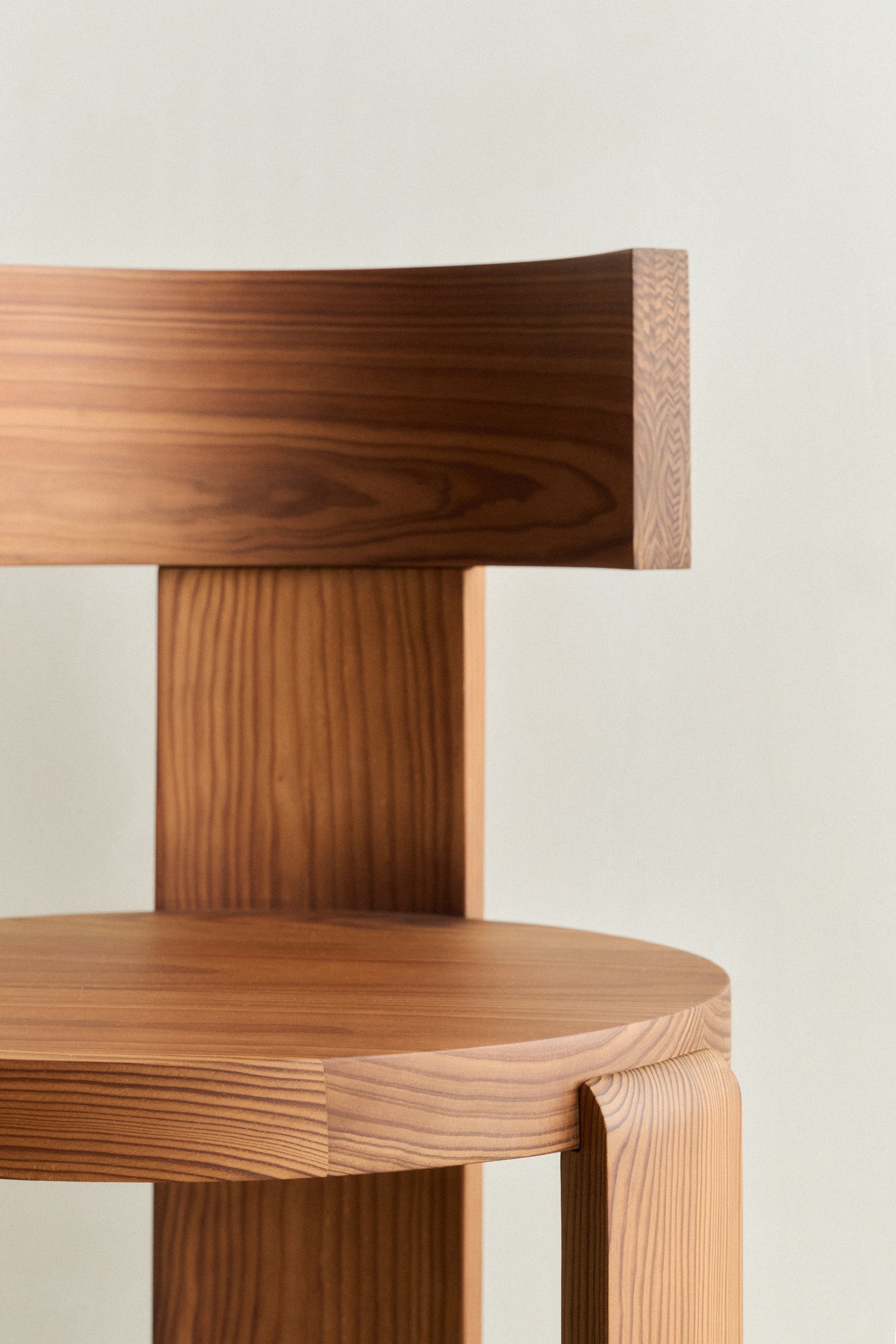 The SPINA Chair collection features a three-legged foundation, accented by a circular seat. Notably wider, the center leg reflects the strength implied by its Latin namesake, “spine”, emphasizing the importance of straight posture.