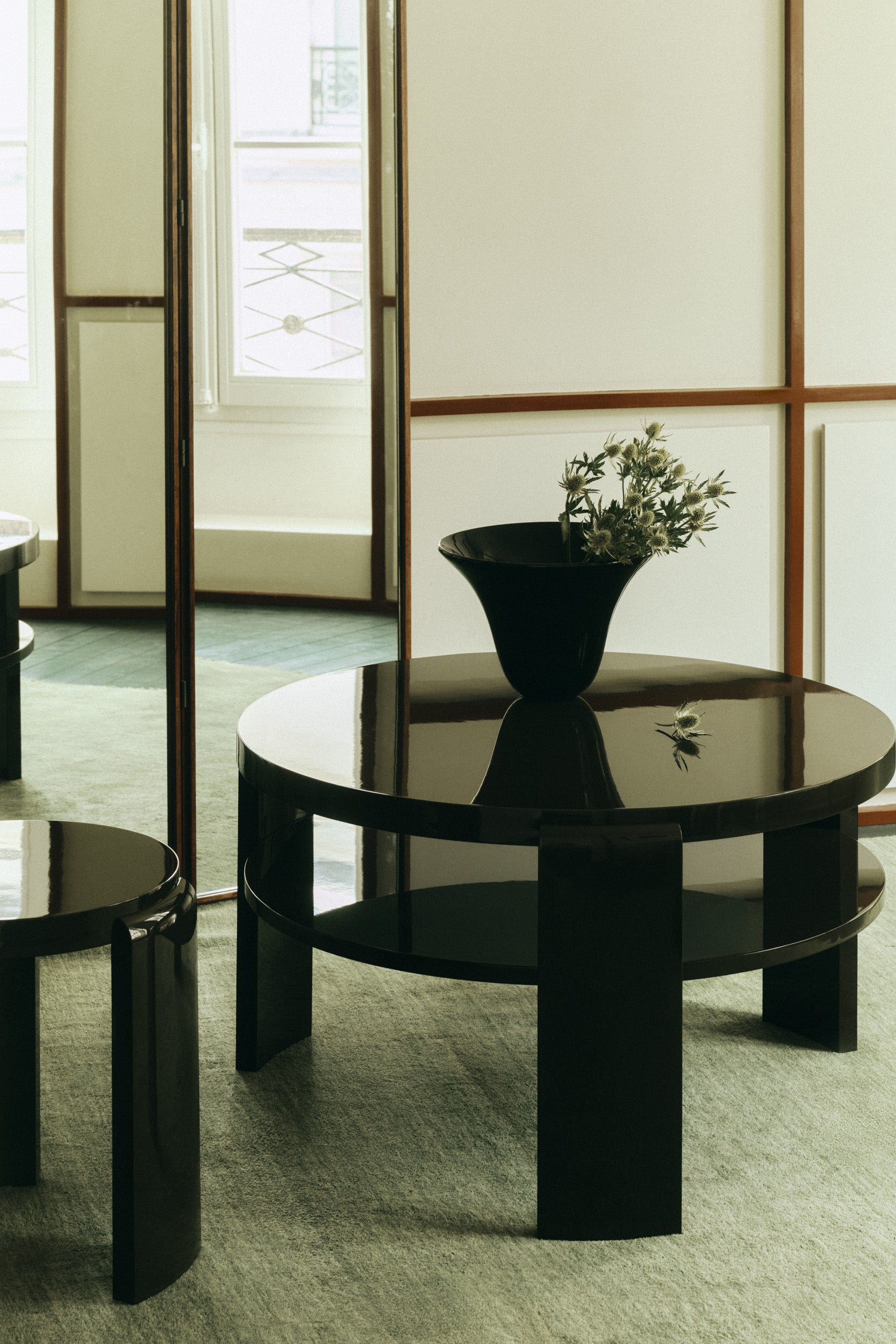 Measuring Ø90 cm in diameter and 52 cm in height, it invites both function and form into a softened, low-slung profile, perfect for informal gatherings or quiet moments.